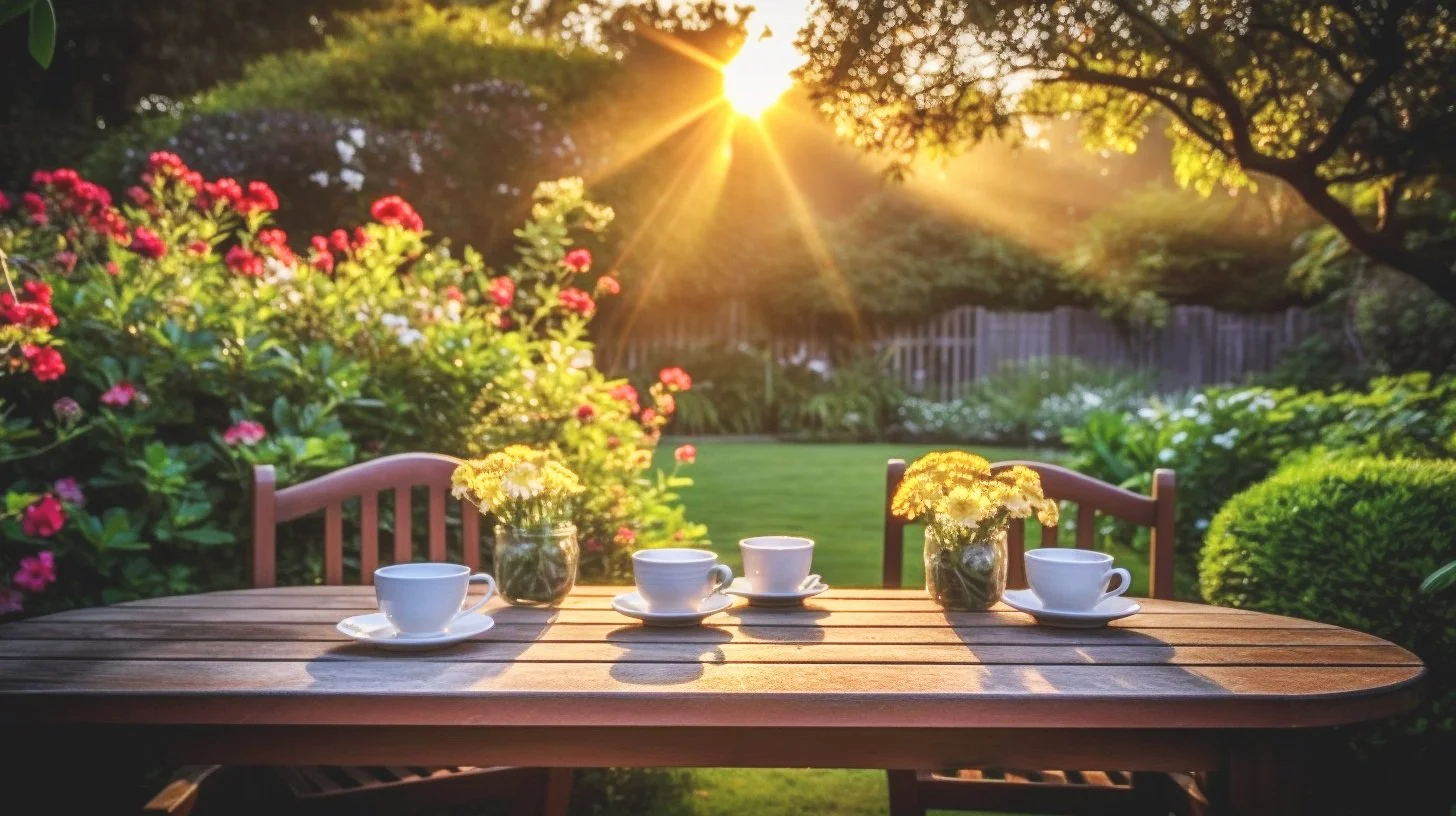 Opt for materials that can withstand the elements, like teak, wrought iron, or polyresin, ensuring your nook is always ready for your morning ritual, come rain or shine.
